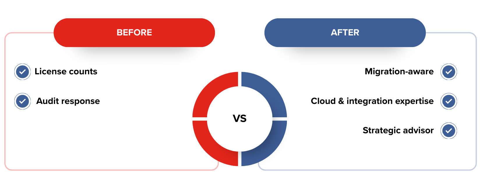 Before, licensing was very compliance-oriented: consultants focused on counting users, tracking usage, and preparing for audits, but by the time systems went live, key decisions about migration, cloud setup, and integration had already been made, making changes expensive and limited. Today, the best licensing strategy starts earlier, during architecture design and transformation planning.